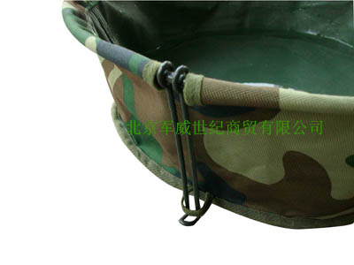 产品名称:迷彩折叠脸盆 颜色为迷彩色,盛水不漏水,外有迷彩袋子包装 可折叠,便于携带,适合部队野外训练时使用。